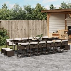 Ensemble a manger de jardin et coussins 17 pcs marron rotin