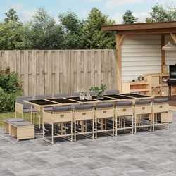 Ensemble a manger de jardin et coussins 17 pcs melange beige