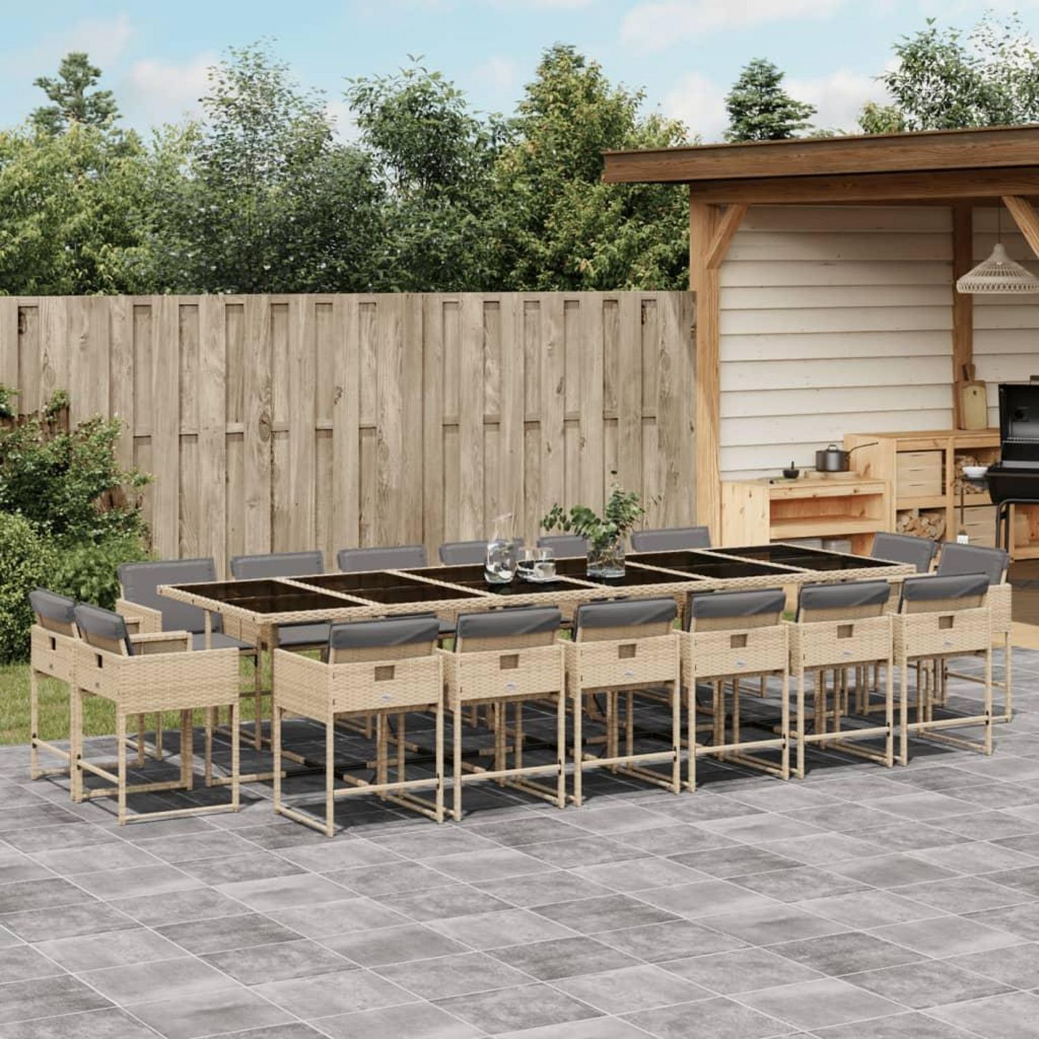 Ensemble a manger de jardin et coussins 17 pcs melange beige