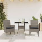 Ensemble a manger de jardin et coussins 3 pcs gris rotin verre