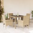 Ensemble a manger de jardin et coussins 5 pcs beige rotin verre