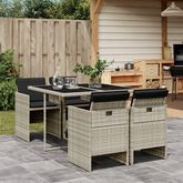 Ensemble a manger de jardin et coussins 5 pcs gris clair rotin