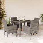 Ensemble a manger de jardin et coussins 5 pcs gris rotin verre