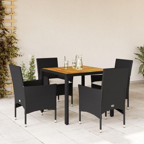 Ensemble a manger de jardin et coussins 5 pcs noir rotin acacia