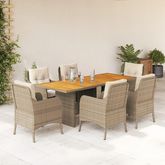 Ensemble a manger de jardin et coussins 7 pcs beige poly rotin