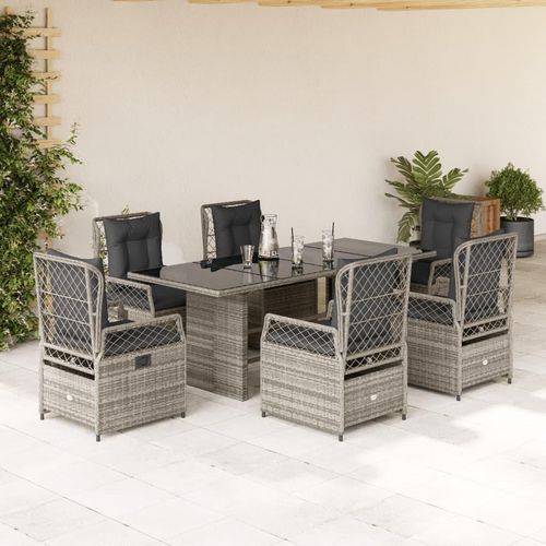 Ensemble a manger de jardin et coussins 7 pcs gris rotin