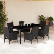 Ensemble a manger de jardin et coussins 7 pcs noir rotin acacia