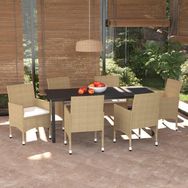 Ensemble a manger de jardin et coussins 7 pcs Poly rotin Beige