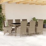 Ensemble a manger de jardin et coussins 9 pcs beige Poly rotin