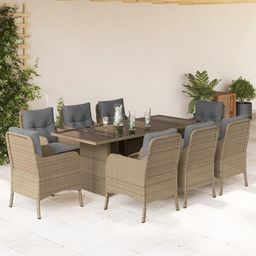 Ensemble a manger de jardin et coussins 9 pcs beige Poly rotin