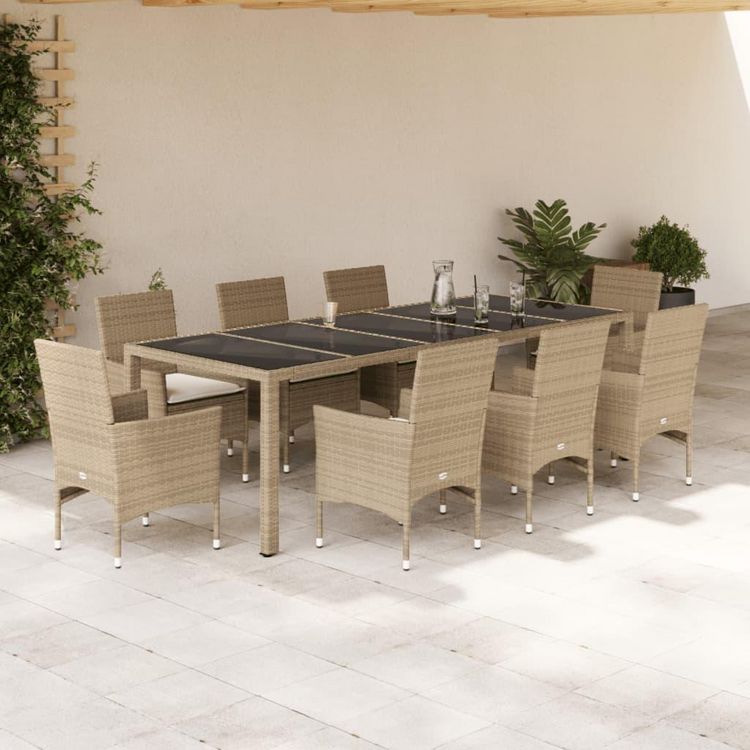 Ensemble a manger de jardin et coussins 9 pcs beige rotin verre