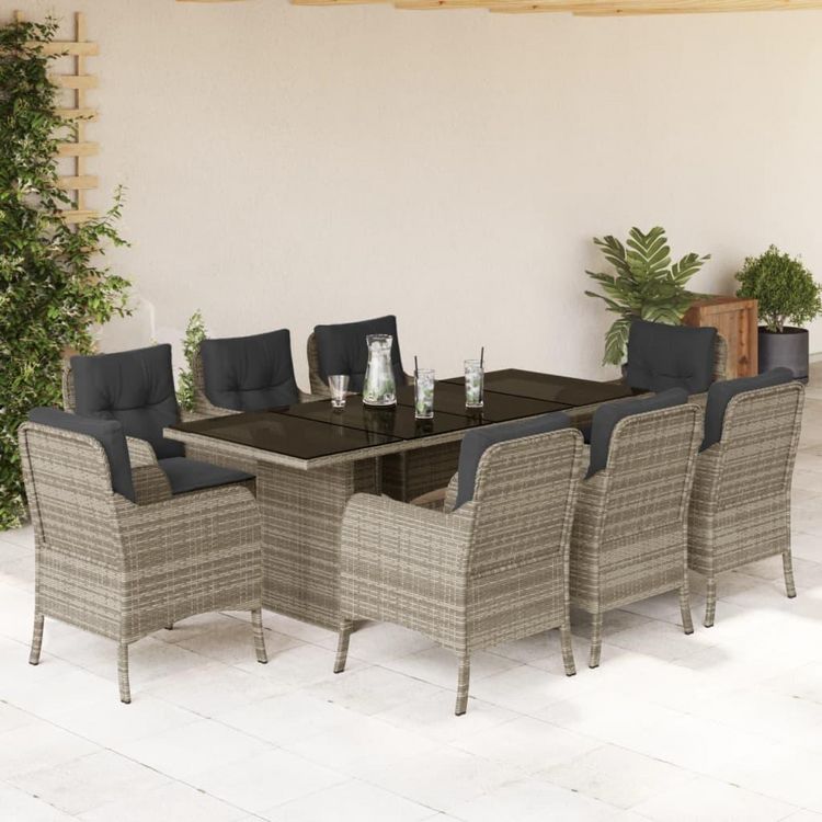 Ensemble a manger de jardin et coussins 9 pcs gris clair rotin