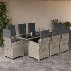 Ensemble a manger de jardin et coussins 9 pcs gris clair rotin
