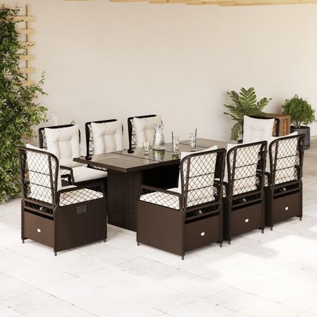 Ensemble a manger de jardin et coussins 9 pcs marron poly rotin