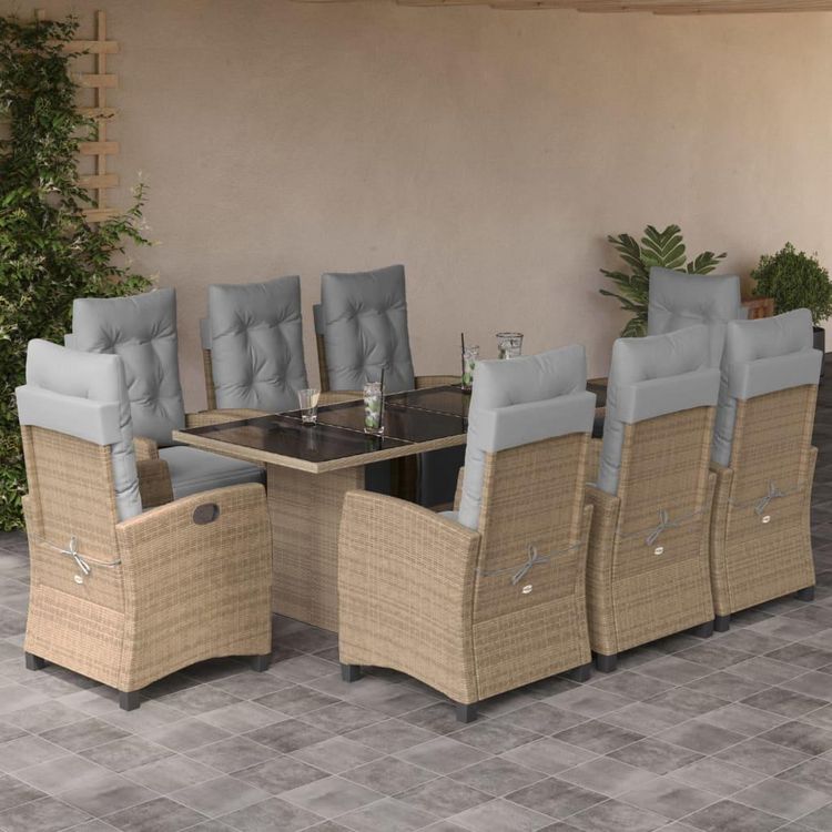 Ensemble a manger de jardin et coussins 9 pcs melange beige