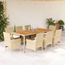 Ensemble a manger de jardin et coussins 9pcs beige rotin acacia