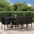 Ensemble a manger jardin 9pcs et coussins noir resine tressee