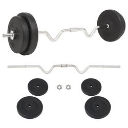 Cet ensemble permet aux utilisateurs de selectionner de maniere variable les poids a soulever pour differents exercices. Ces disques sont en ciment avec une coque en plastique et peuvent facilement etre fixees sur les barres a l'aide des verrous en forme d'etoile inclus. Le poids est clairement marque sur chaque disque pour une identification rapide et facile.