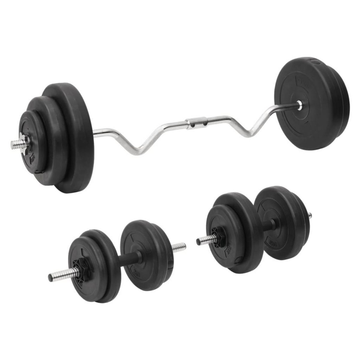 Ensemble d'halteres et de barre ondulee avec plaques 60 kg