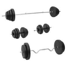 En savoir +Cet ensemble polyvalent d'halteres et de barres avec plaques est un choix parfait pour ceux qui recherchent des options d'entraînement variees.