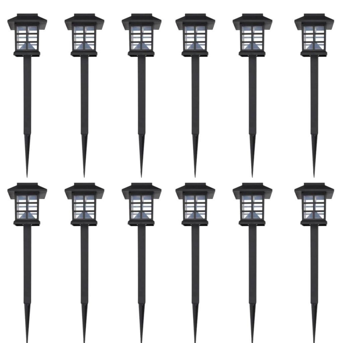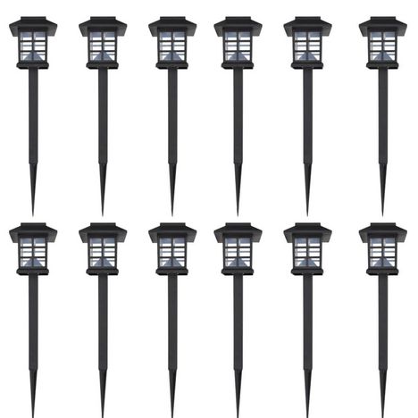Ensemble de 12 lampes LED solaires avec piquet 8,6x8,6x38 cm