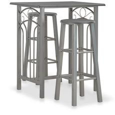 Fabrique en bois durable, les surfaces sont faciles a nettoyer. Les cadres en acier offrent une grande stabilite. Les chaises peuvent etre rangees sous la table lorsqu'elles ne sont pas utilisees. De plus, les tabourets de bar sont dotes de repose-pieds integres de deux hauteurs differentes, apportant un confort supplementaire.