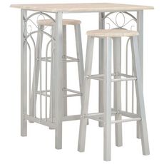 Fabrique en bois durable, les surfaces sont faciles a nettoyer. Les cadres en acier offrent une grande stabilite. Les chaises peuvent etre rangees sous la table lorsqu'elles ne sont pas utilisees. De plus, les tabourets de bar sont dotes de repose-pieds integres de deux hauteurs differentes, apportant un confort supplementaire.