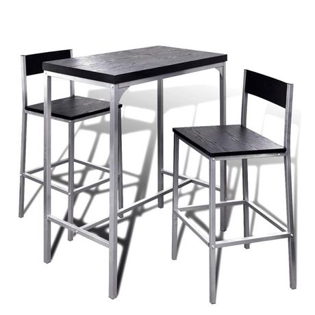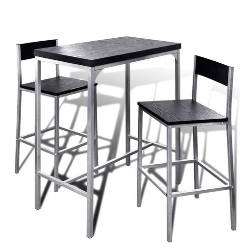 Cet ensemble de bar a petit dejeuner est fabrique en MDF de haute qualite en noir, facile a nettoyer et convient a tout decor. Les cadres en acier de qualite rendent l'ensemble tres stable et durable.