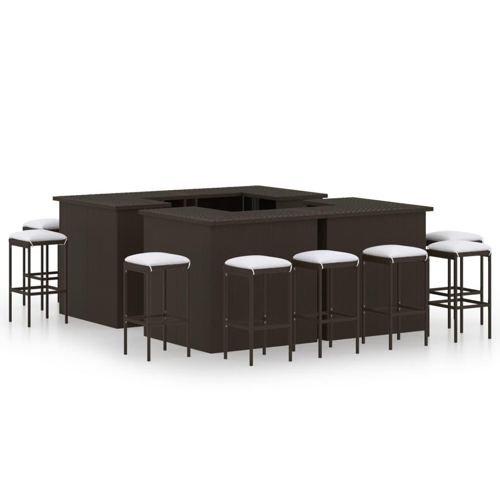 Ensemble de bar de jardin 16 pcs coussins Resine tressee Marron