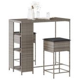 Ensemble de bar de jardin 3 pcs et coussins gris resine tressee