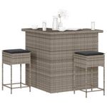 Ensemble de bar de jardin 3 pcs et coussins gris résine tressée