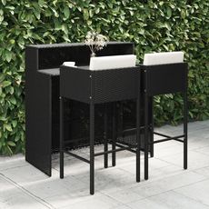 Ensemble de bar de jardin 3 pcs et coussins Resine tressee Noir