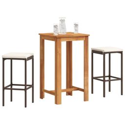 Ensemble de bar de jardin 3 pcs marron bois massif acacia rotin