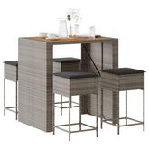 Ensemble de bar de jardin 5 pcs avec coussins gris poly rotin