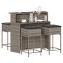 Ensemble de bar de jardin 5 pcs avec coussins gris poly rotin