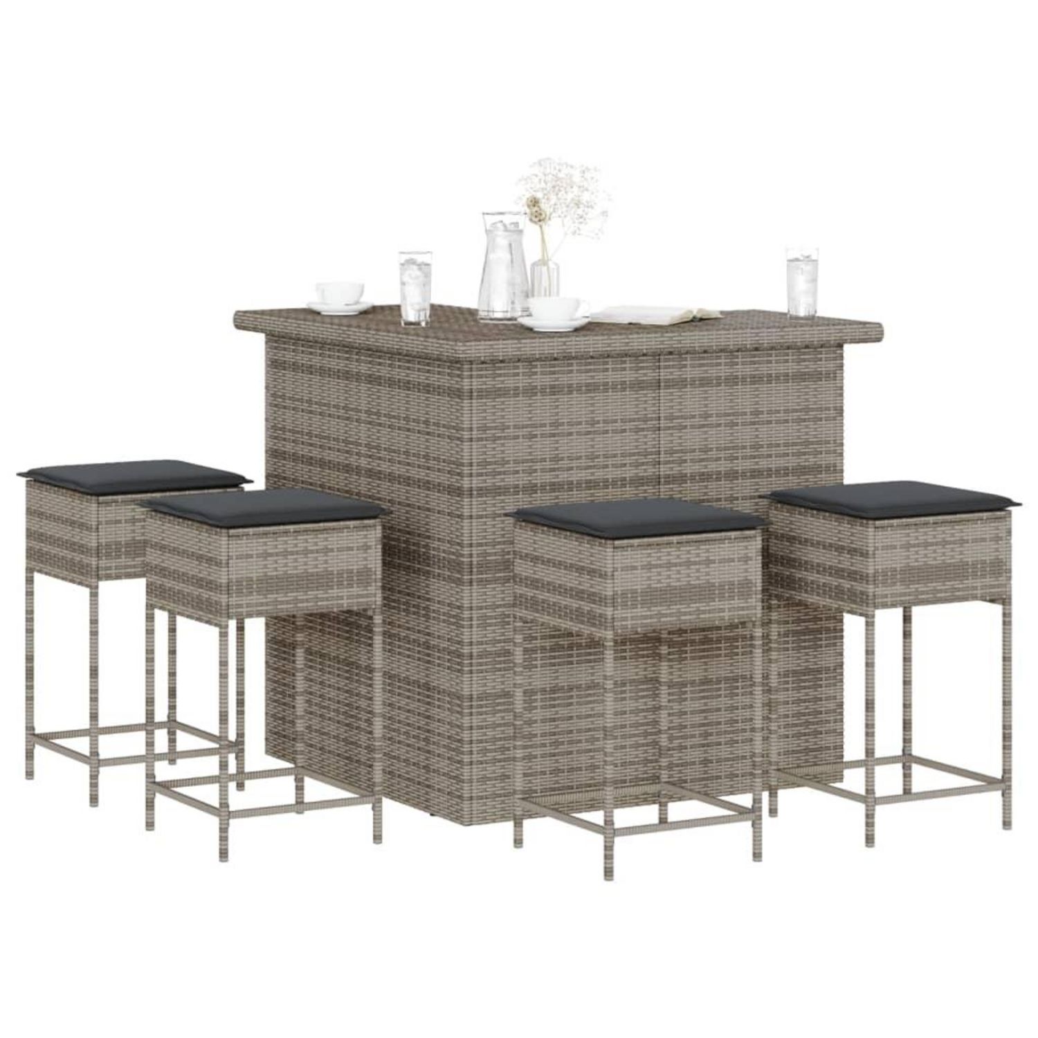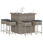 Ensemble de bar de jardin 5 pcs avec coussins gris poly rotin