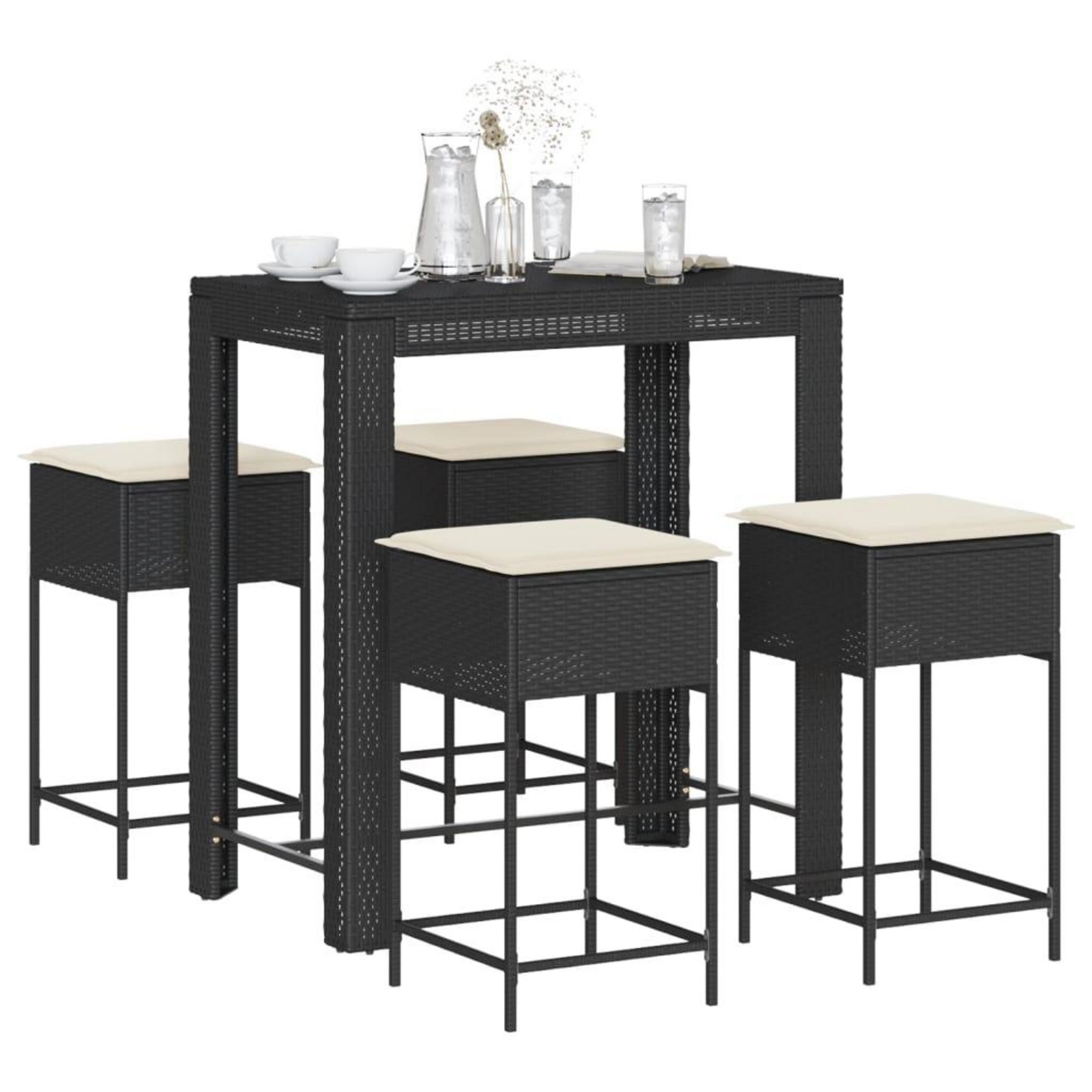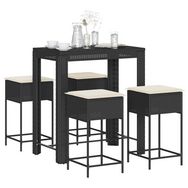 Ensemble de bar de jardin 5 pcs avec coussins noir poly rotin