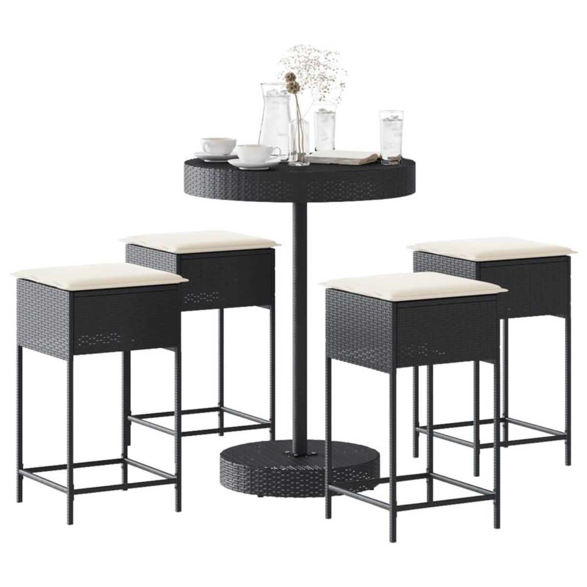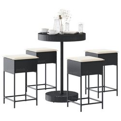 Ensemble de bar de jardin 5 pcs avec coussins noir poly rotin