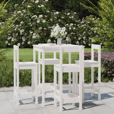 Ensemble de bar de jardin 5 pcs blanc bois massif de pin