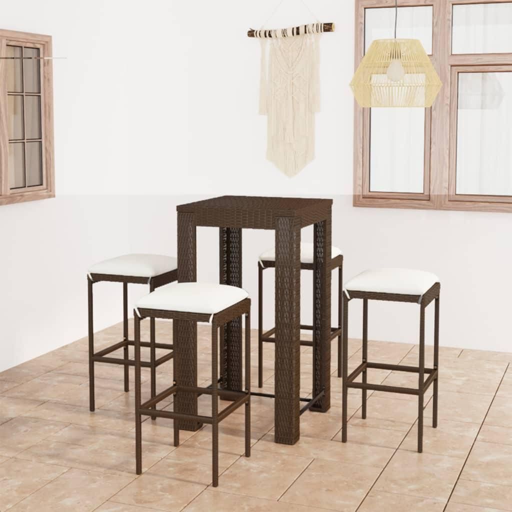 Ensemble de bar de jardin 5 pcs coussins Resine tressee Marron