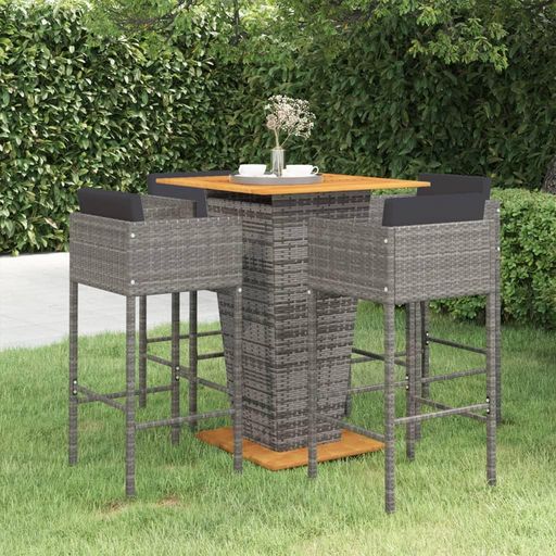 Ensemble de bar de jardin 5 pcs et coussins Resine tressee Gris