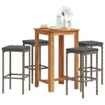 Ensemble de bar de jardin 5 pcs gris bois massif acacia rotin