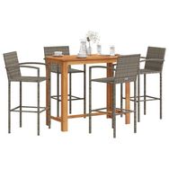 Ensemble de bar de jardin 5 pcs gris bois massif acacia rotin