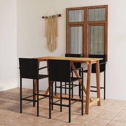 Cet ensemble de bar de jardin a un design elegant et sera le point de mire de votre jardin, patio ou terrasse. La table est en bois d'acacia massif avec une finition a l'huile, ce qui la rend stable, durable et facile a entretenir. Dote d'un cadre en acier enduit de poudre recouvert de resine tresse