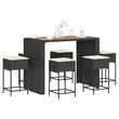 Ensemble de bar de jardin 7 pcs avec coussins noir poly rotin