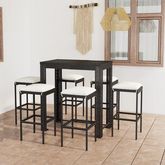 La table de bar est soutenue par un cadre en acier enduit de poudre, ce qui la rend stable et robuste. Le dessus de table carre est ideal pour placer des boissons, de la nourriture ou des objets decoratifs. Les tabourets ont une construction solide de cadre en acier et sont faits de resine tressee resistante aux intemperies, assurant la stabilite et sont faciles a deplacer. Le coussin et le repose-pied ajoutent egalement du confort d'assise supplementaire au tabouret. La housse de coussin en polyester avec fermeture eclair dissimulee le rend facile a nettoyer.