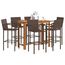 Ensemble de bar de jardin 7 pcs marron bois massif acacia rotin