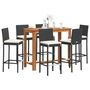 Ensemble de bar de jardin 7 pcs noir bois massif acacia rotin