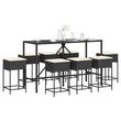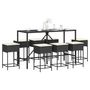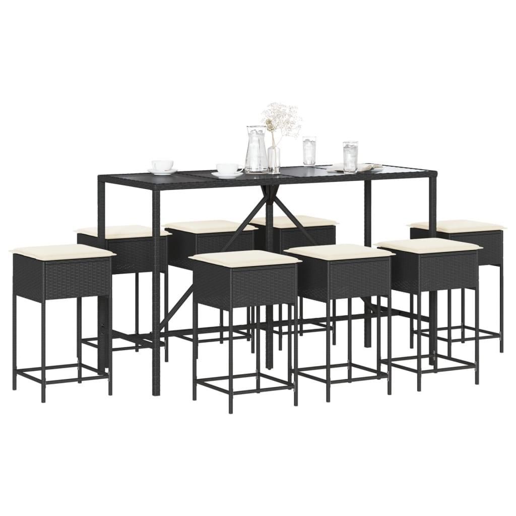Ensemble de bar de jardin 9 pcs avec coussins noir poly rotin