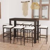 Ensemble de bar de jardin 9 pcs coussins Resine tressee Marron